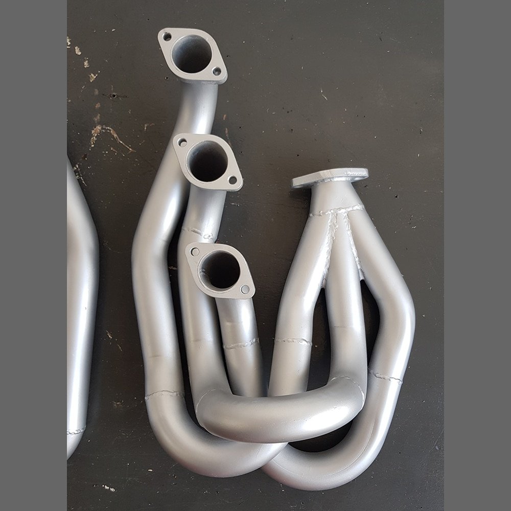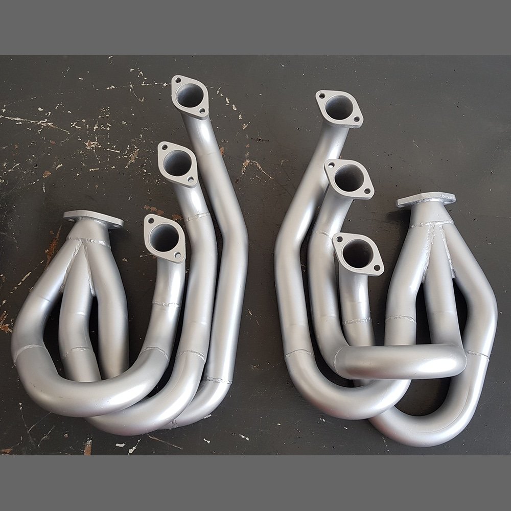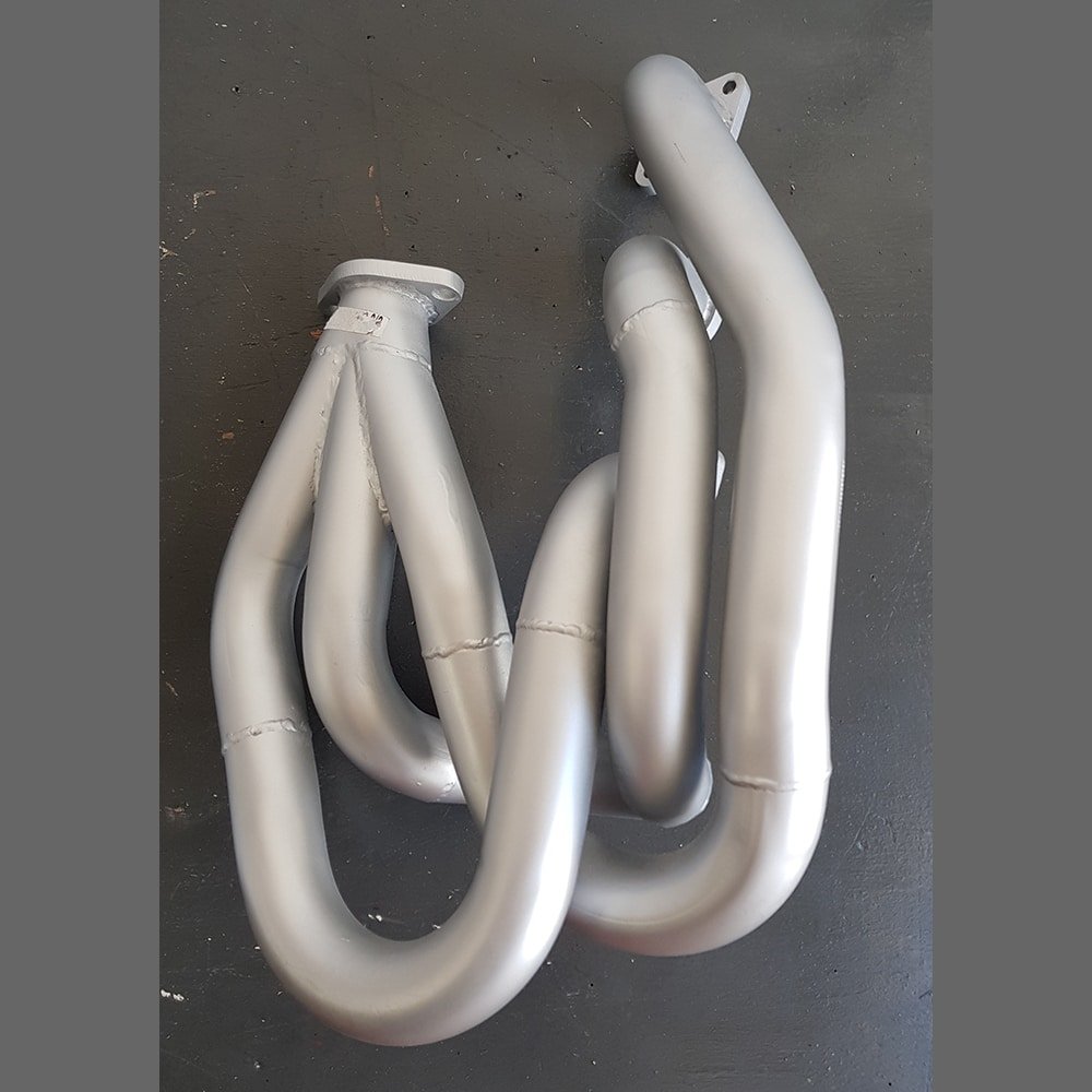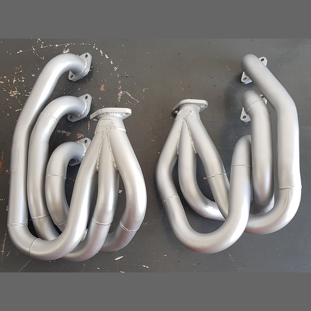 Pair of unheated racing exhaust manifolds. Left and right sides. Stainless steel. 45mm outer diameter. UNUSED.