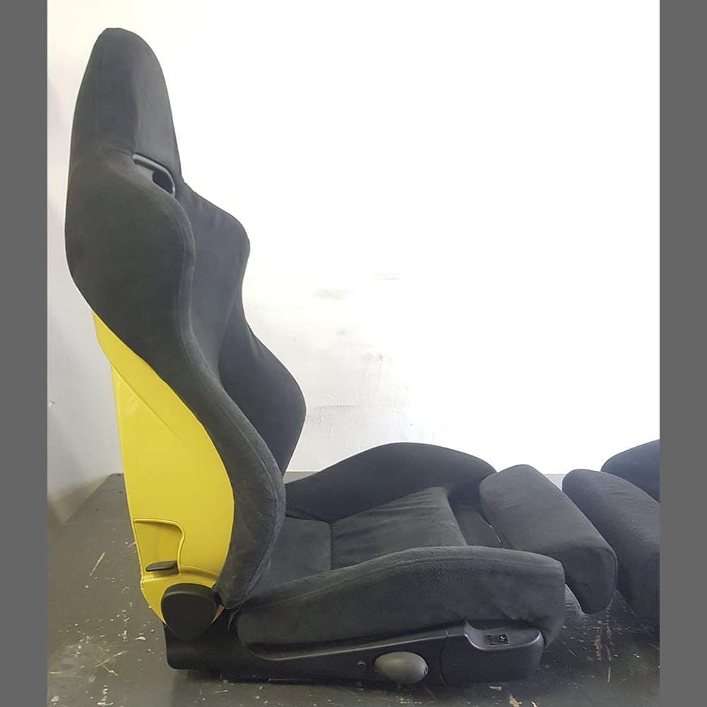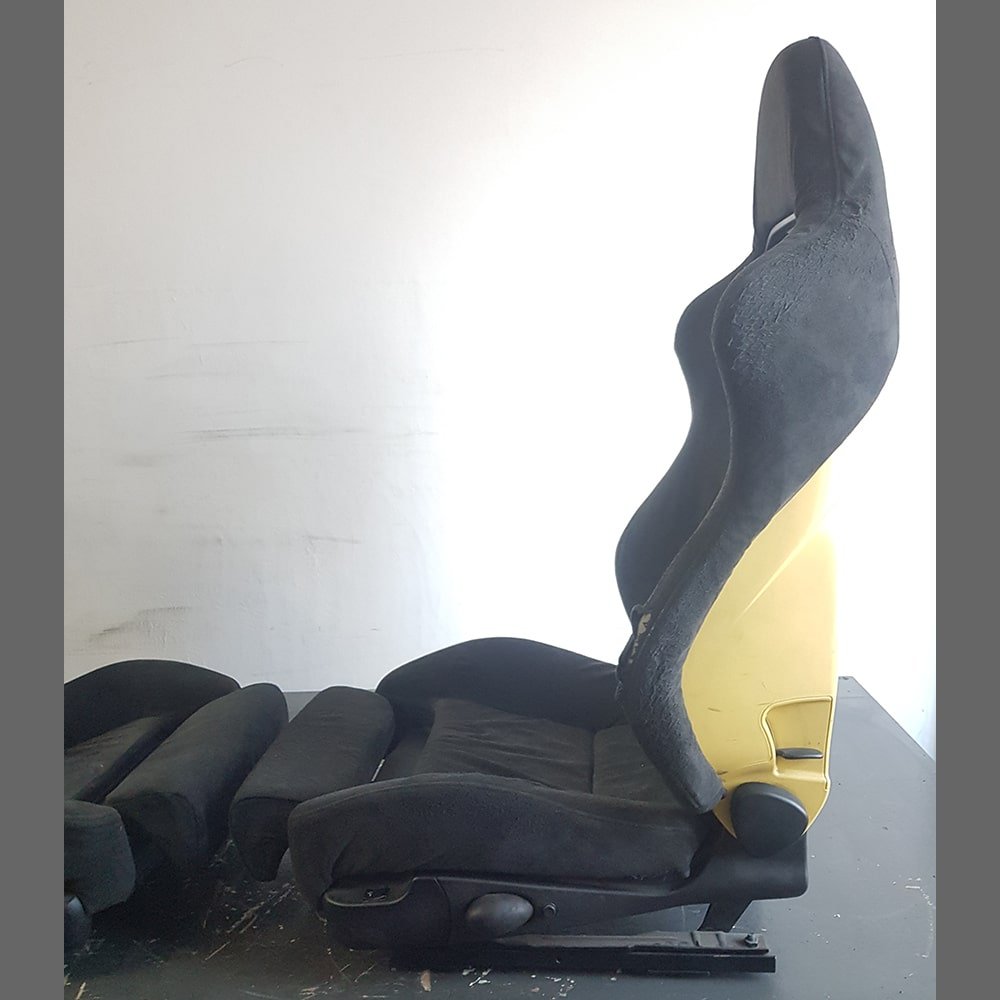 * Price for each seat reupholstered in genuine Alcantara is €633 + VAT. – If you order us to reupholster in genuine Alcantara, we can paint the back of the bucket in the color you request. (It’s currently yellow)