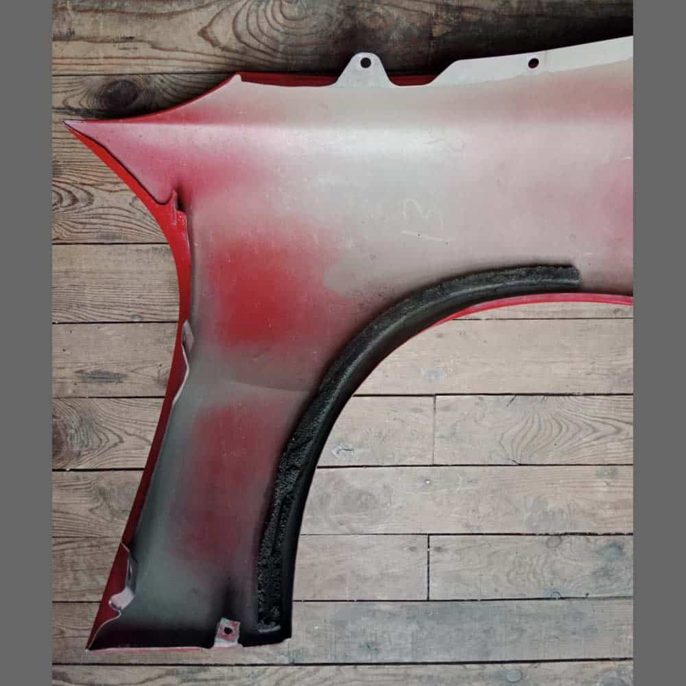 Aleta delantera izquierda Porsche 996/986 MK2 con soporte recepción faro delantero. PET: 99650303101GRV. Color Rojo.