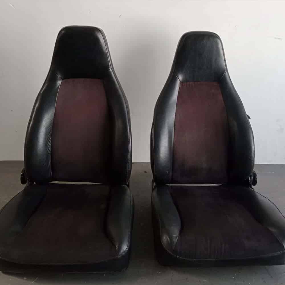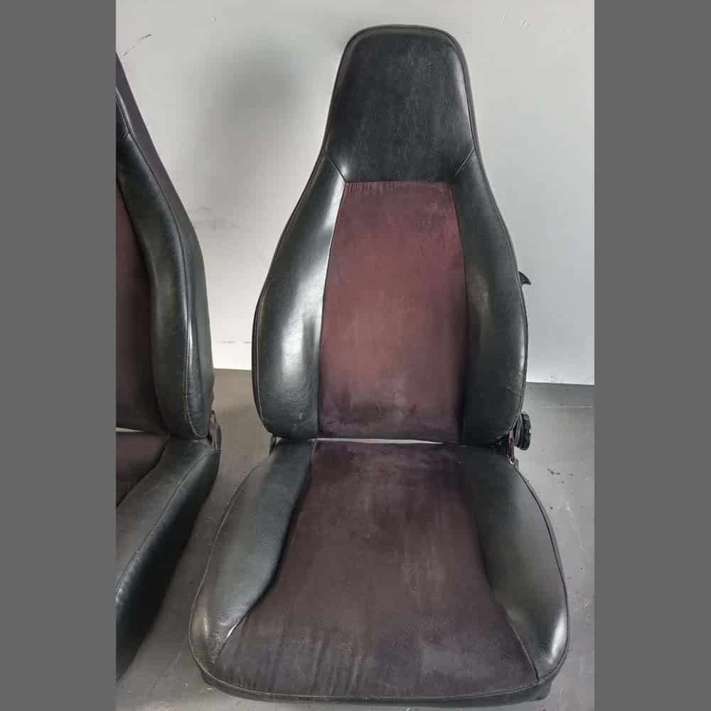 Asientos delanteros Porsche 911. Años (1974-82). Polipiel color Negro y centro en tela color Granate. PET: 91152100281 / 91152100182