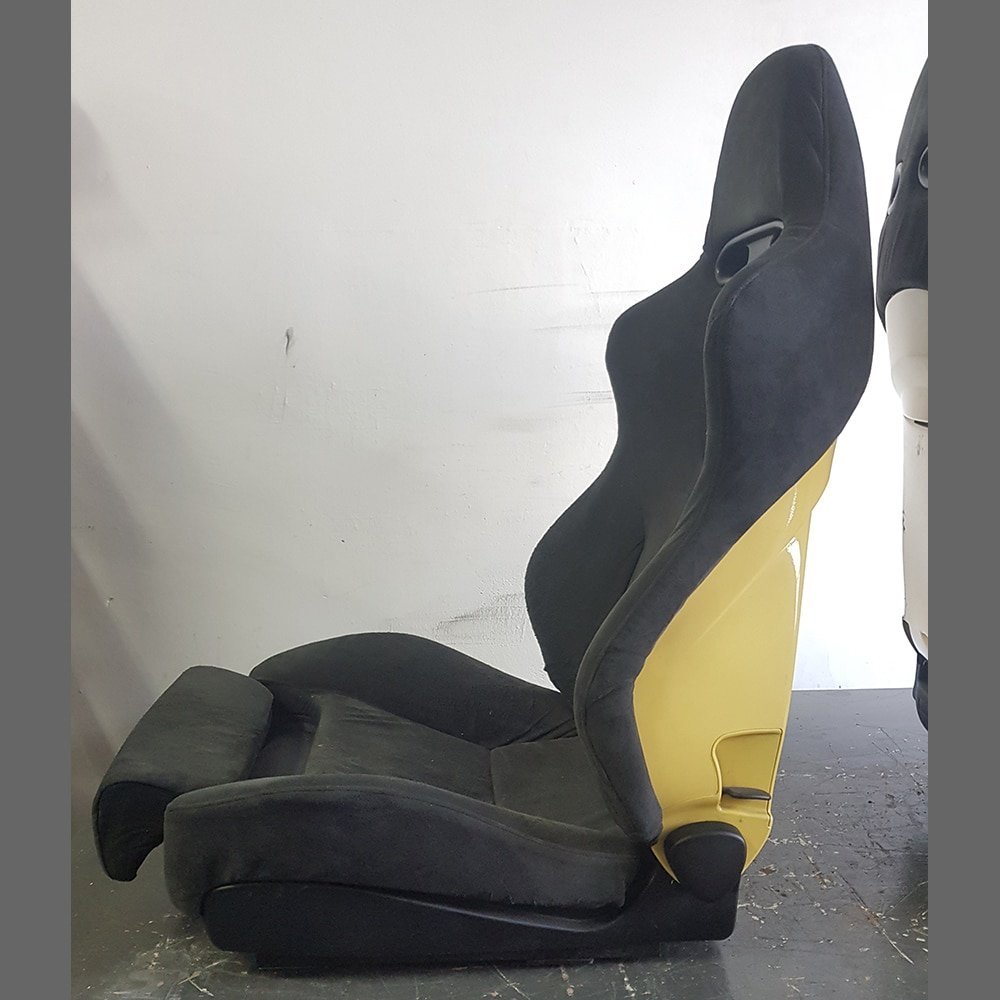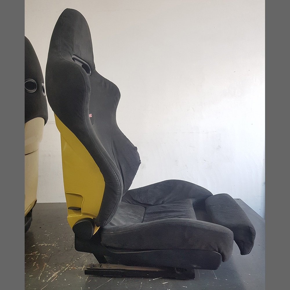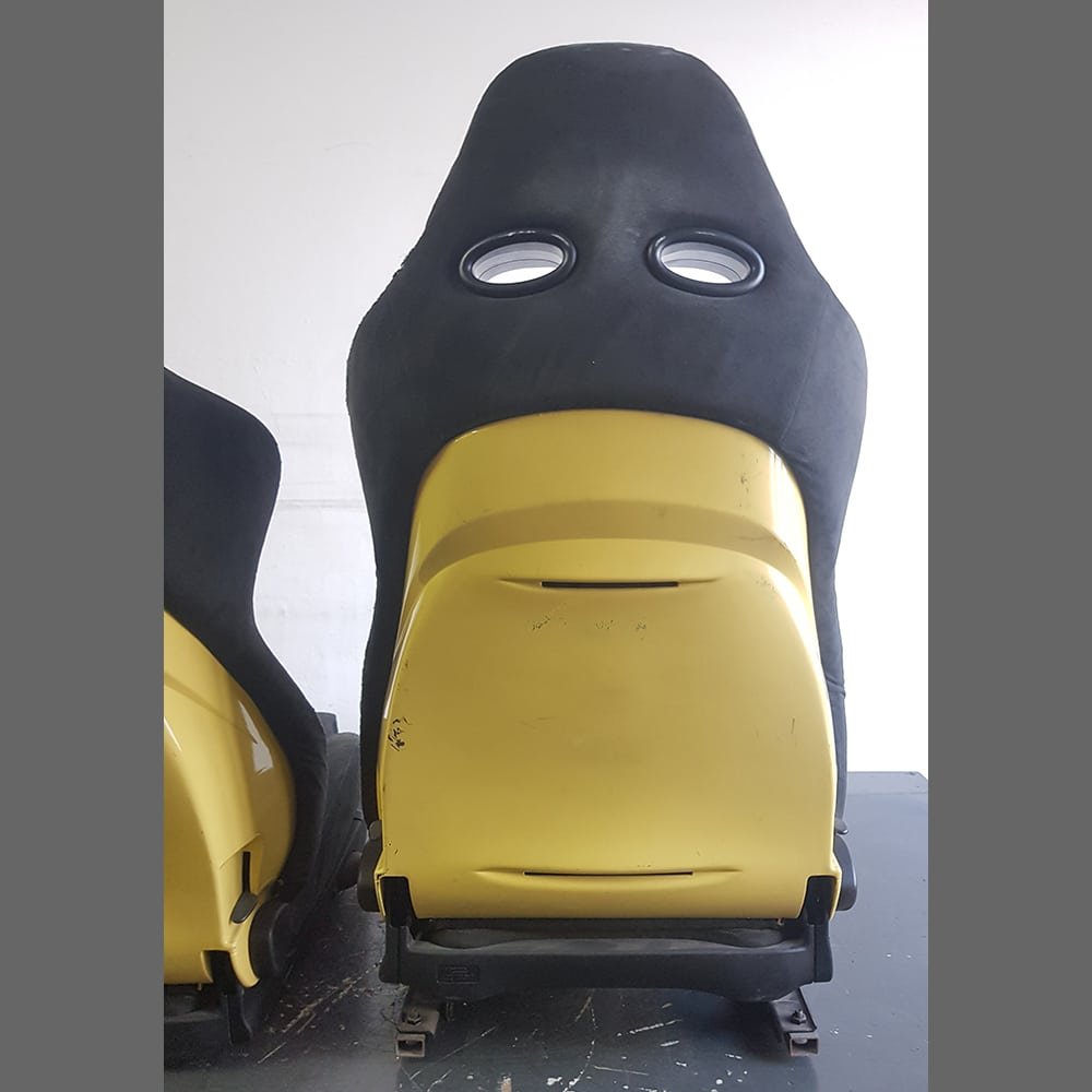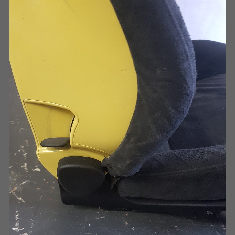 – En el caso de que nos encargen el retapizado en Alcantara genuina podemos pintar el bucket en su parte posterior en el color que solicite. (Ahora es amarillo)