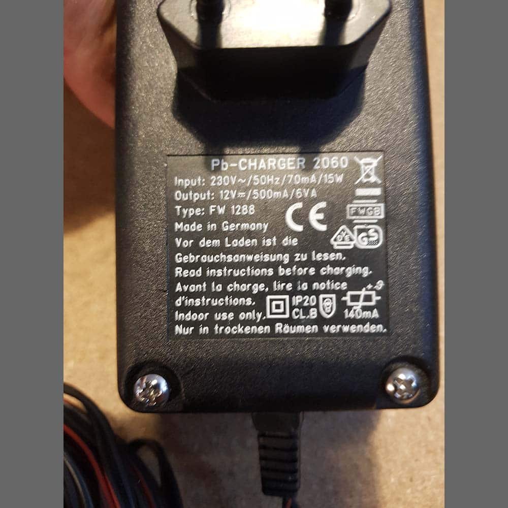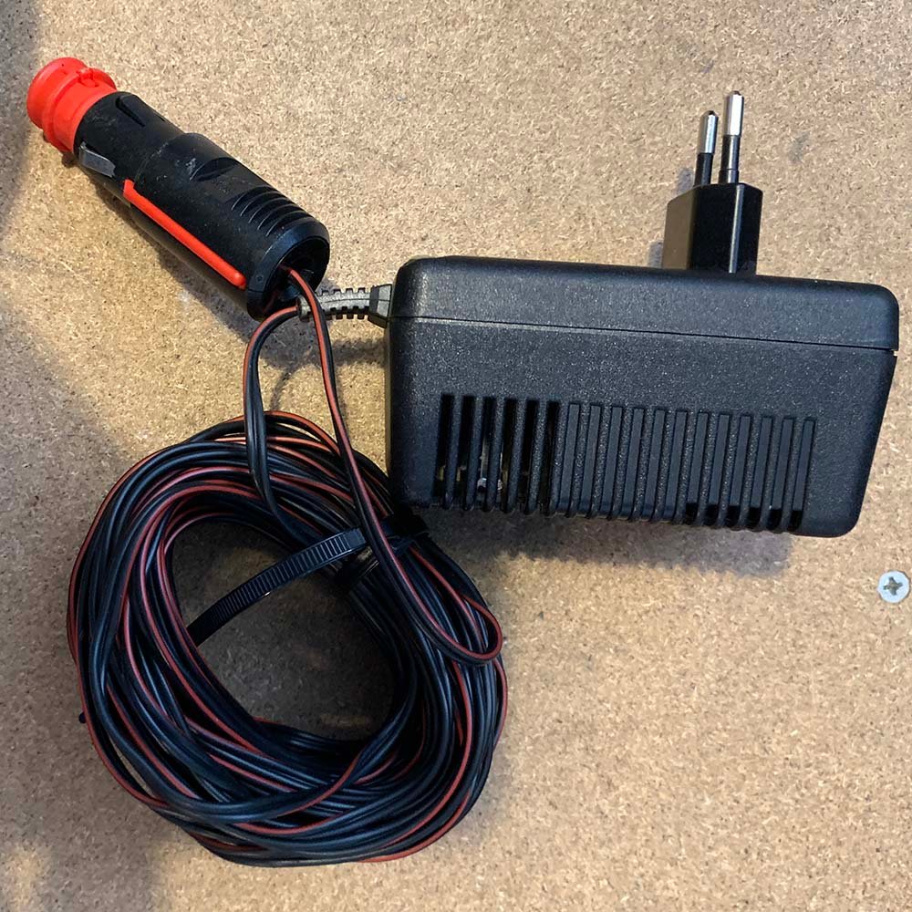 Cargador de batería Genuino Porsche. Input de 230V (enchufe Europeo) con conexión para encendedor de cigarrillos 12V.