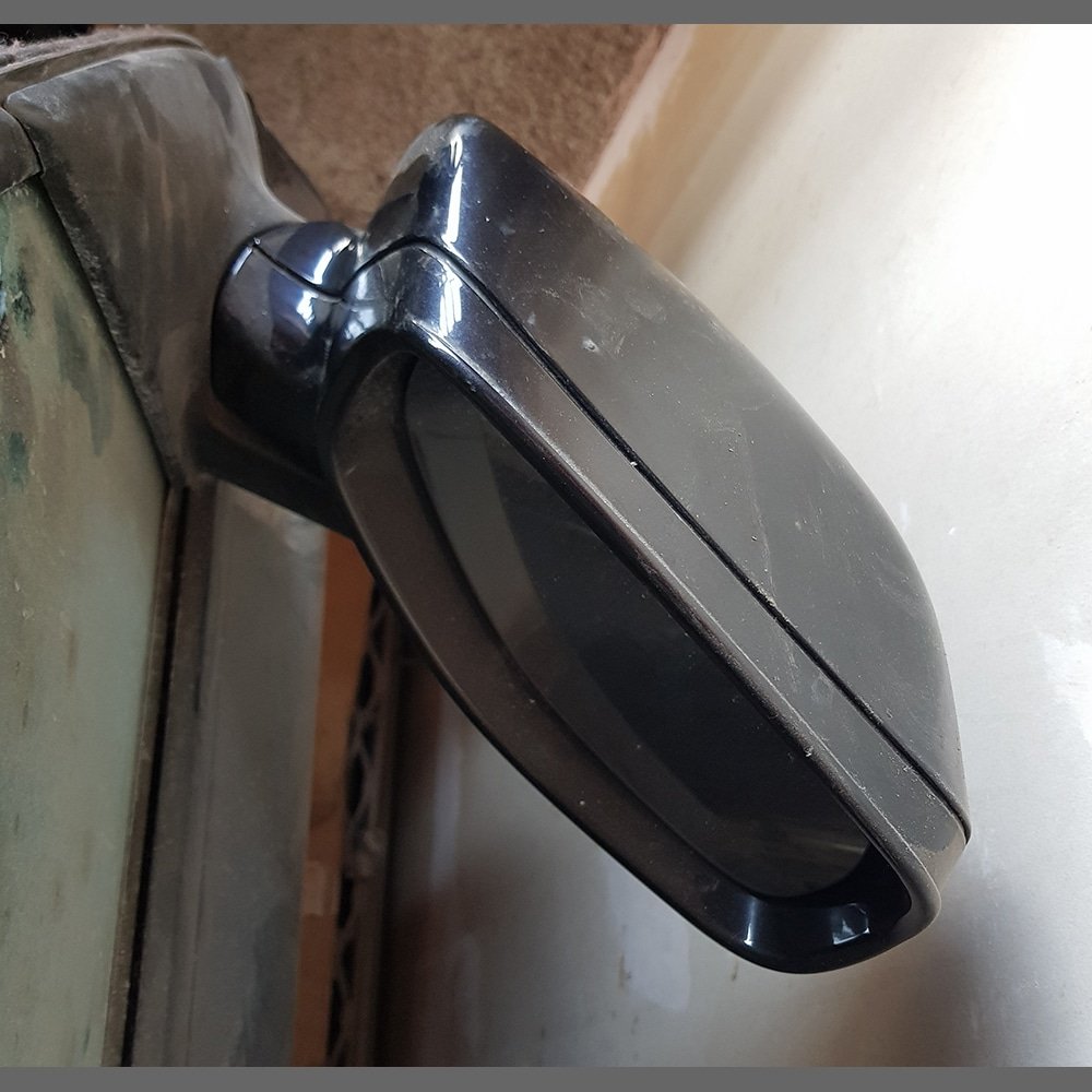 Espejo retrovisor exterior lado derecho con función memory replegable y calefactable. Color Negro