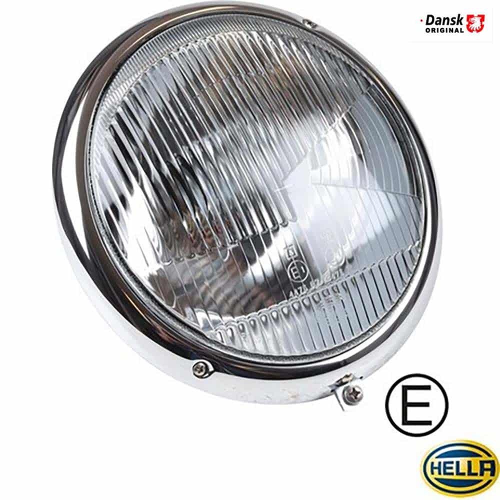 Faro delantero luz blanca para Porsche 356 A/B/C con borde cromado y con marcado UE. By Dansk