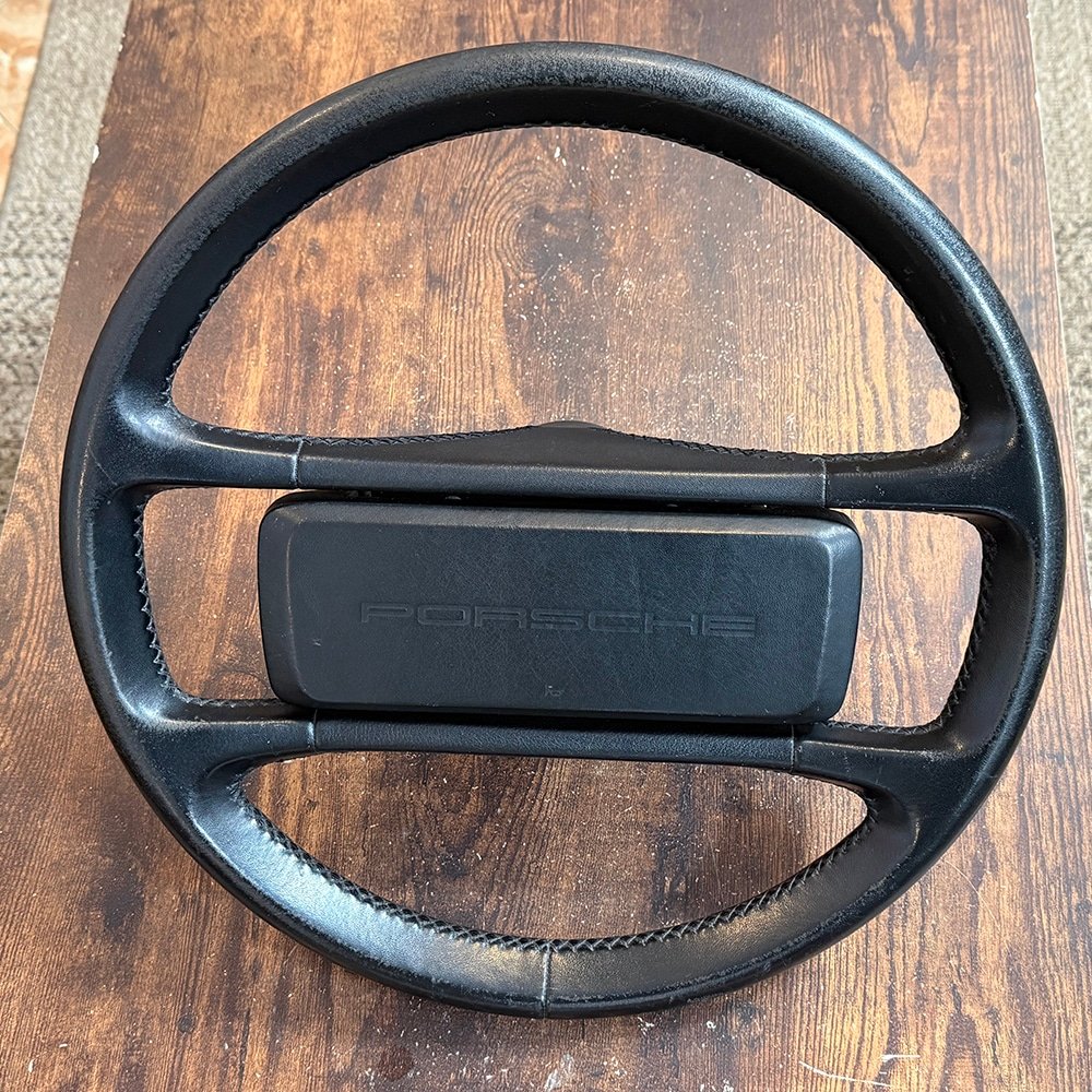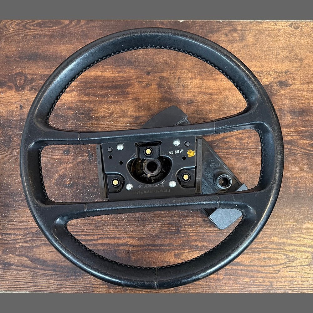 Volante Porsche 964. PET: 96434708400 (02VERL). Color Negro. Buen estado. Presenta algo de patina
